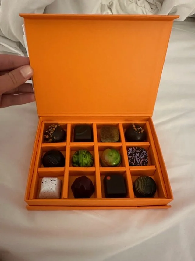 Since this was right before our anniversary, we treated ourselves to some fancy chocolates. Worth it.